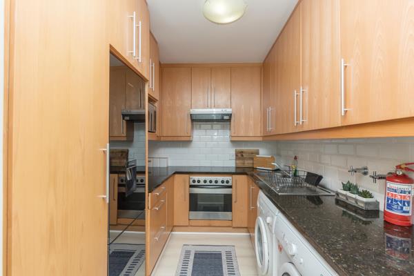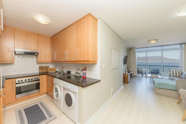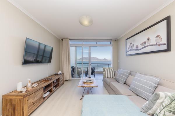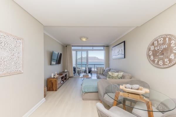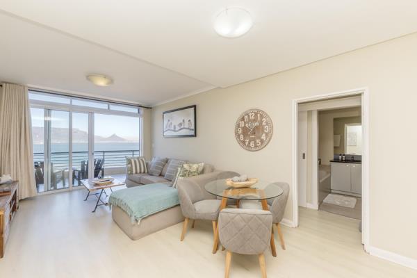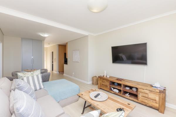 The open plan lounge flows via sliding doors to a spacious gas braai friendly balcony, with unsurpassed views of Table Mountain and the ocean