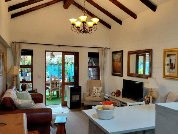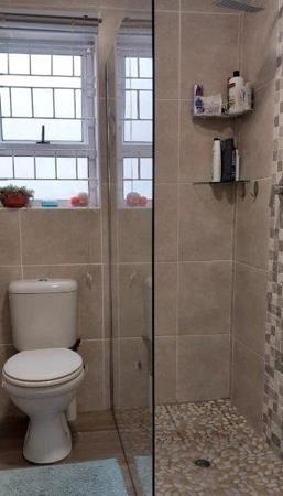 Stunning 2-bedroom home in pristine condition, boasting a generous open-plan living area with soaring double-volume ceilings. The contemporary kitchen is equipped with both gas and electric stoves. The inviting living room opens onto a partially enclosed covered patio, perfect for relaxation.