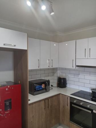 This modern 2-bedroom, 2-bathroom apartment in Table View, Blouberg, offers contemporary living and its close to Bayside Mall. The kitchen features two-tone cabinetry, a subway tile backsplash, and integrated oven and hob. The living area, with tiled flooring, extends to a private balcony.Bedrooms boast modern wood-look flooring and neutral walls, with one including a built-in wardrobe for practical storage. This unit provides a stylish, lock-up-and-go home ideal for professionals.