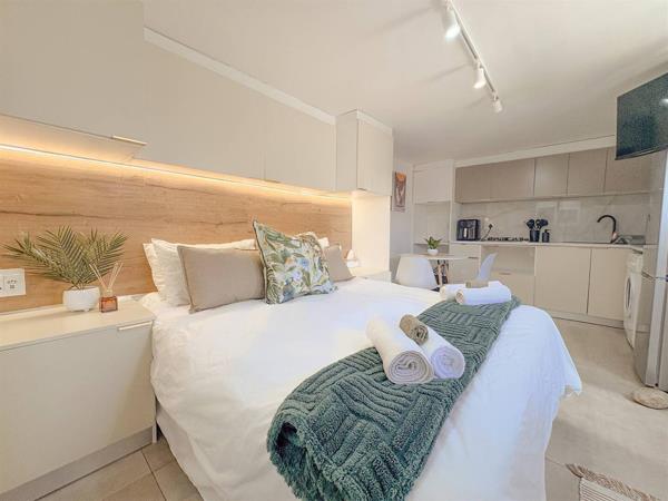 Inside, youll find a comfortable bedroom with cosy bedding, ideal for restful nights after a day of exploring Cape Town. Ensuite bathroom is clean and modest, featuring a refreshing shower. The fully equipped kitchenette makes it easy to prepare meals, with all essential cookware and utensils.