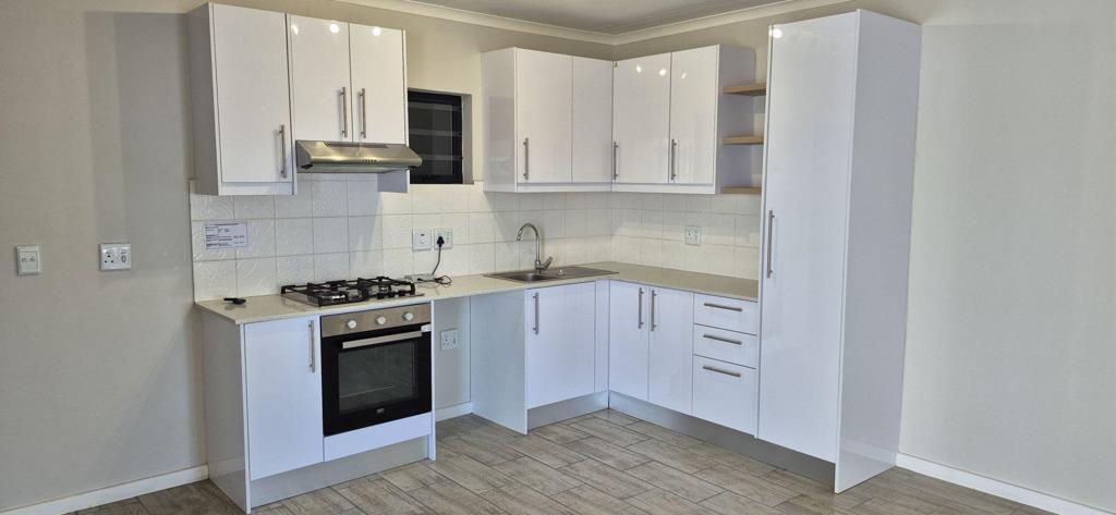 Modern kitchen with gas hob and space for 1 undercounter appliance