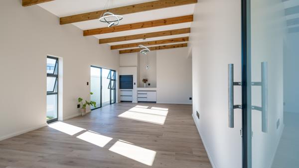 Inside, youll find three bedrooms and two bathrooms (main en-suite). The open-plan living, dining, and kitchen area flows seamlessly, complete with a built-in braai for year-round entertaining and a separate scullery/laundry for added practicality.