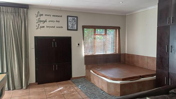 Warm, welcoming lounge featuring a built-in braai and a jacuzzi perfect for year-round relaxation
