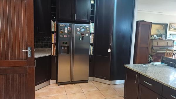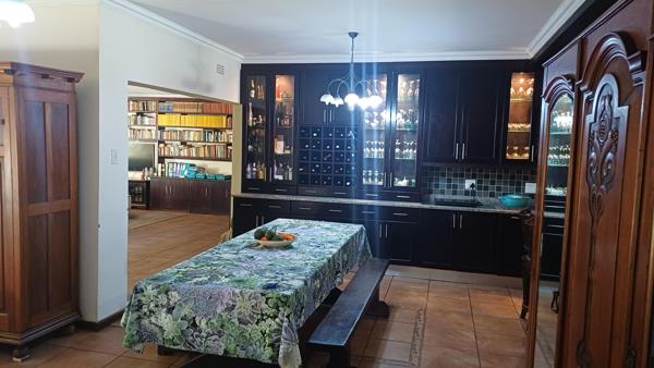 Open-plan kitchen with ample cupboard space separate scullerylaundry