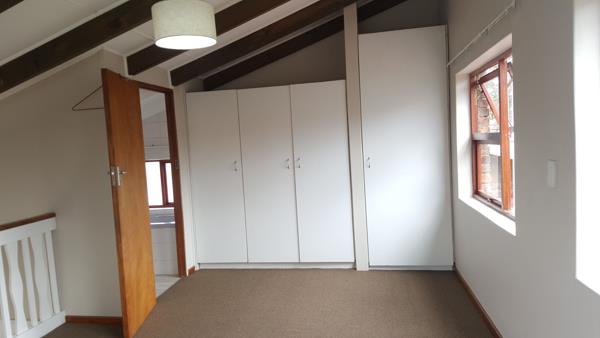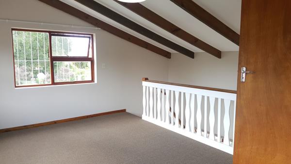 This duplex, garden cottage consists of 1 bedroom, 1 bathroom bath, basin & toilet - No shower on the first floor, open plan kitchenlounge, guest toilet, patio, small garden, and 1 carport. Separate entrance. It is situated in a beautiful and tranquil area.