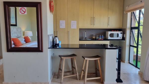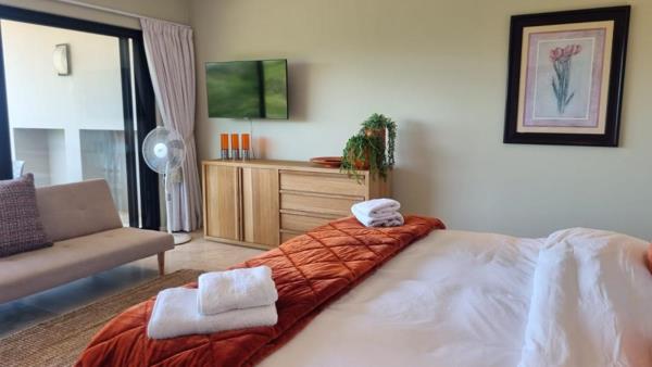 Open plan bedroom, kitchenette with bathroom. Spacious balcony.