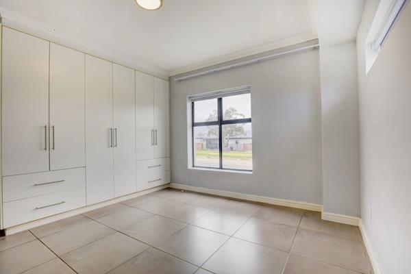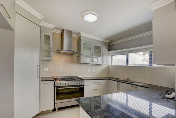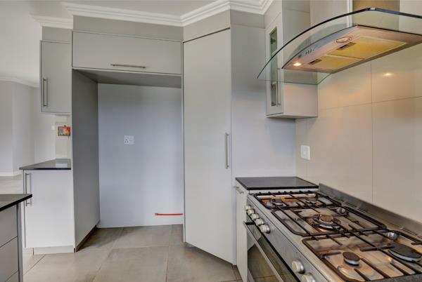 Offers spacious open plan living area with compact and modern kitchen. Fitted with a gas geyser, gaselectric stove and water tank. Fibre.