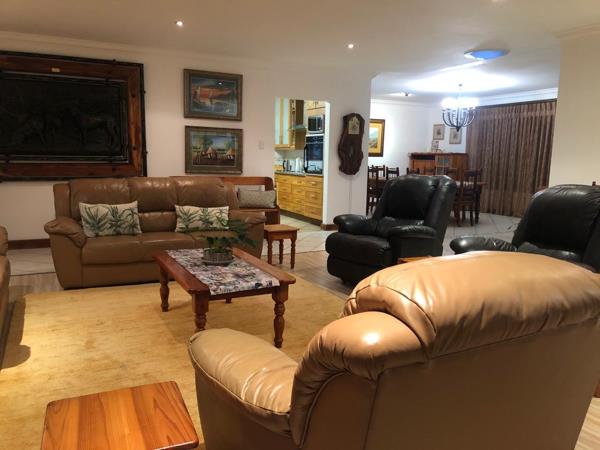Beautiful Spacious 3 bedroom family house to let. The house consists of an entrance hall, formal lounge, TV lounge with bar area, dining room, braai room, kitchen with built-in stove, and separate laundry/scullery. Study, workroom, 3 bathrooms. Garden with entertainment area, 2 garages with carport. The study has a separate entrance to the garden and the braai room opens up to the garden.