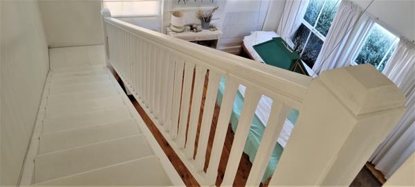 Upstairs are the most stunning decorated 2 en-suite bedrooms, both with balconies. One north facing balcony and the other balcony has a glimpse of the ocean over the treetops.