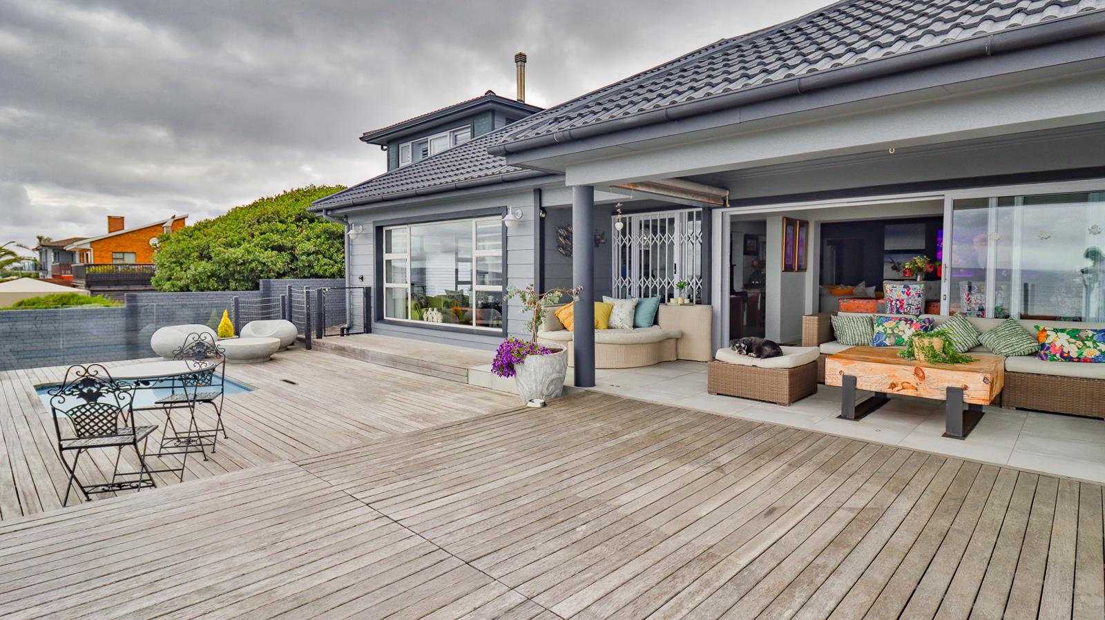 Welcome to your dream escape on the Garden Route. This spacious 6-bedroom retreat comfortably sleeps up to 10 guests, offering the perfect blend of privacy, comfort, and coastal charm. Nestled in the peaceful seaside village of Reebok, the home invites you to unwind with ocean breezes, open-plan living, and generous outdoor spaces ideal for sunset braais and morning coffee.