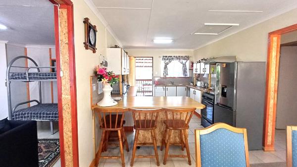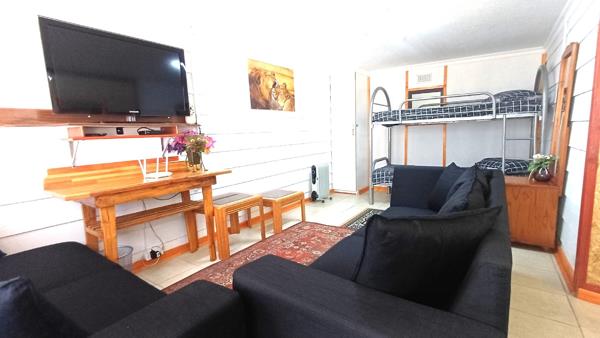 This cosy self-catering flatlet in Fraaiuitsig offers comfortable accommodation for a relaxed holiday. The open-plan living, dining, and kitchen area creates a welcoming space for family or friends to unwind.