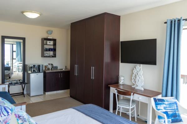 Features a fully equipped kitchenette with a refrigerator and microwave. Relax with your favorite shows on the flat-screen TV with streaming services, enjoy the modern bathroom with a refreshing shower, and savor the breathtaking sea views from your private balcony.