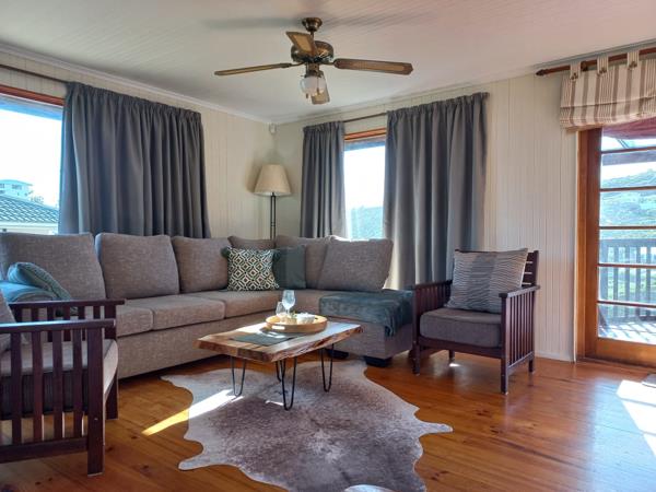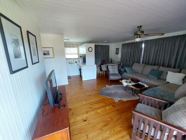 Open plan living area opens onto the north deck, perfect for braaing on windy days or just taking in sunsets over the valley.