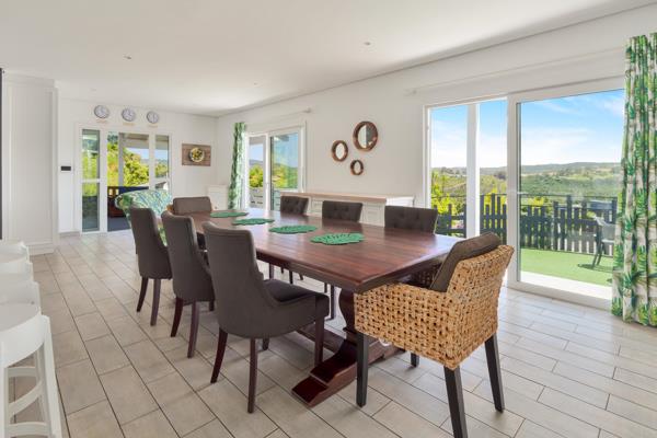 Welcome to your dream escape in Knysna Heights! This beautiful 3-bedroom, 3-bathroom holiday home offers the perfect blend of relaxation and elegance. Enjoy a spacious, fully equipped kitchen, ideal for hosting and preparing delicious meals. The heart of the home is a large entertainment area that seamlessly extends to an undercover veranda, creating the perfect setting for gatherings, rain or shine.