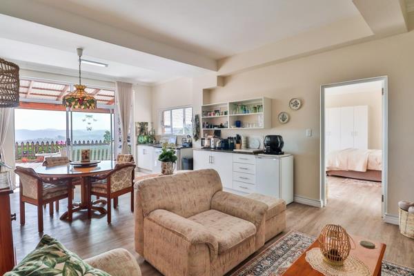 Stunning fully furnished and equipped apartment, attached to beautiful residential dwelling in Knysna Heights. Private apartment, spacious, and offers so much ! Lovely open plan living area, with dining and kitchen.