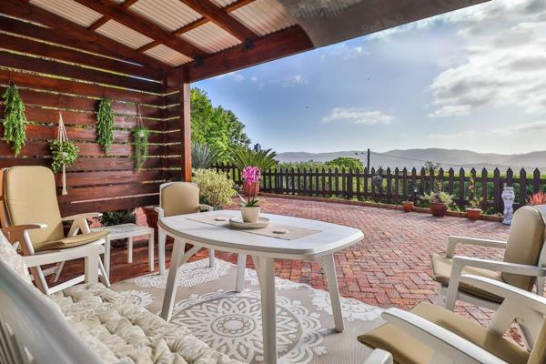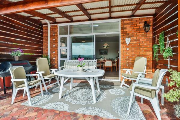 Sliding doors open out to a Private Outdoor Area, with with garden furniture and braai. Relax outside on warm summer days and nights. Safe and secure outdoor area. Enjoy the view and picture perfect sunsets.