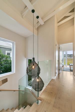 The generous downstairs level is designed for easy flow, with an open-plan lounge, dining space, and