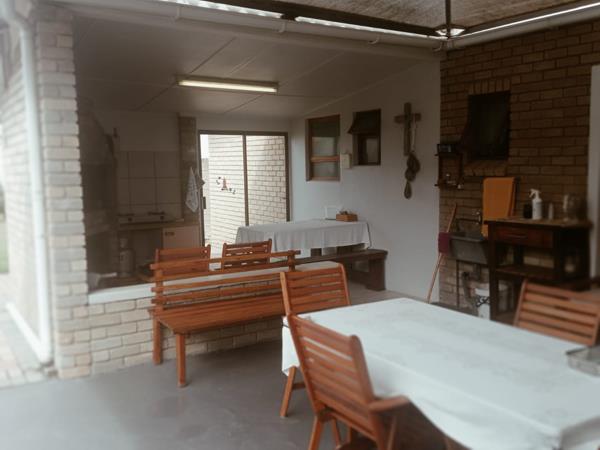 Step outside to the open patio, complete with a built-in braai ideal for outdoor gatherings. Secure parking is available with a double garage and extra space for additional vehicles.