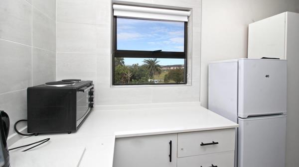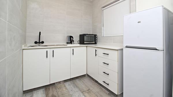 This newly renovated, modern 1-bedroom, 1-bathroom apartment is situated in a secure complex in the heart of Hartenbos Central. The unit offers a stylish, low-maintenance living space, ideal for a single professional or couple.