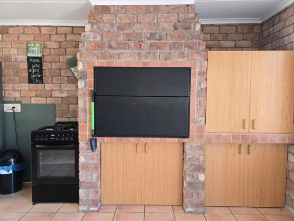 The home boasts a spacious kitchen ideal for entertaining, as well as a built-in braai for relaxed indoor-outdoor living.