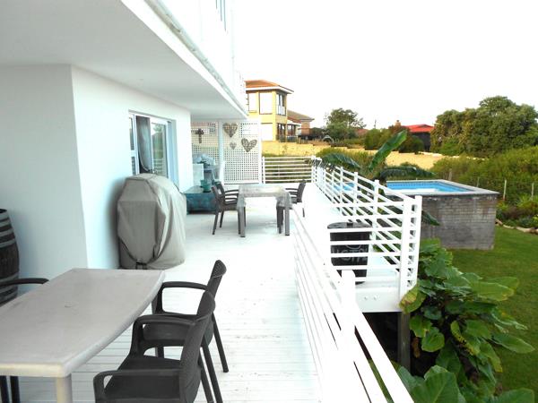 The heart of the home is the lovely sunny deck, offering a ocean view, a braai for delicious cookouts, and an inviting pool the perfect backdrop for creating cherished summer memories together.