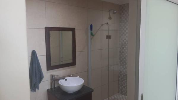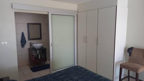 This stunning studio has one bedroom with en-suite bathroom. It has an open plan lounge and kitchen with all the necessities and extra. Space for a braai (only charcoal) outside by the patio door.