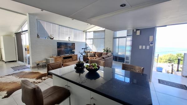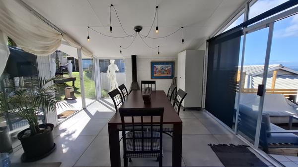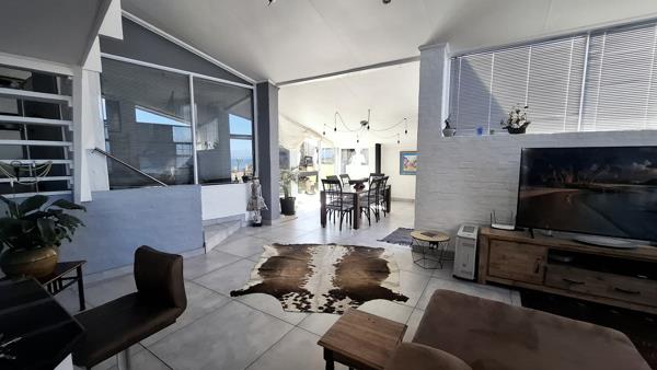 The spacious open-plan living area is the heart of the house, flowing onto a balcony with a built-in braai. Here you''ll be treated to magnificent panoramic vistas of the Outeniqua Mountains and the sparkling sea.