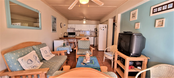 There are shaded parking for the car and an outside shower. You have direct access to the beach, the communal swimming pool and a play park for the kids.