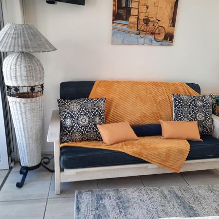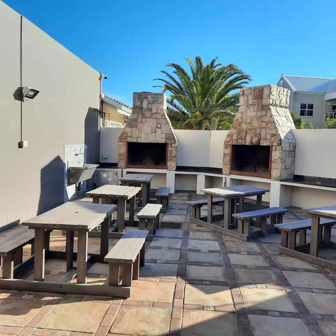 Beautiful open plan set-up with separate bathroom, enclosed deck with built in braai overlooking the ocean and sparkly blue pool.