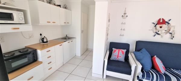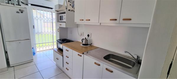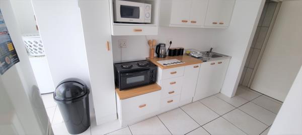 Fully-Equipped Kitchen: Compact and functional with a single basin, 2-plate stove, microwave, and fridge.