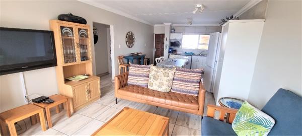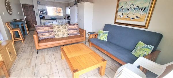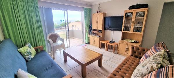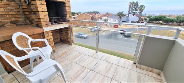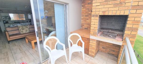 Features two en-suite bedrooms, spacious living room with sleeping couch, which leads out onto the balcony with built-in braai and sea view.