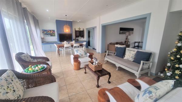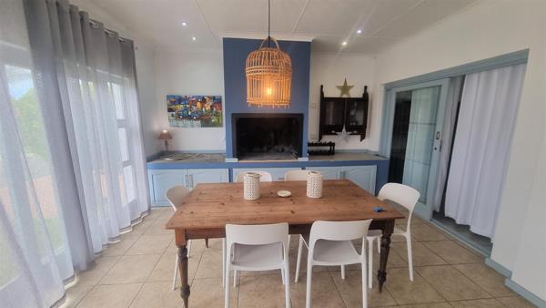 Designed with your comfort in mind, the living room is spacious, adorned with large sliding doors that lead outside, allowing natural light to fill the space. A sociable braai room provides an ideal setting for gatherings and entertaining guests.