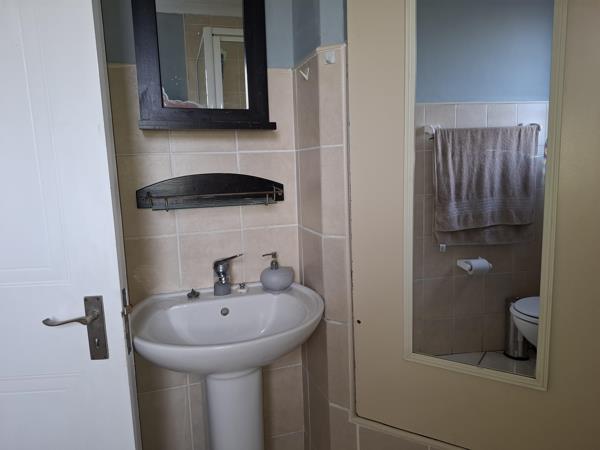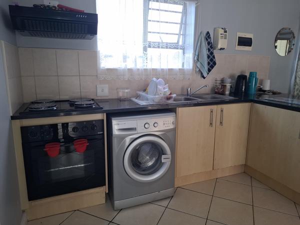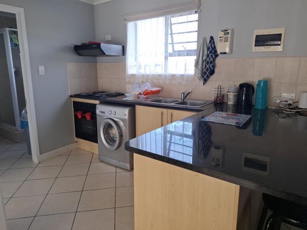 This fully furnished one-bedroom flat offers an open-plan lounge and kitchen, perfect for your holiday. The bedroom features built-in cupboards and the bathroom includes a shower, basin, and toilet. Enjoy an indoor built-in braai area, ideal for entertaining guests.