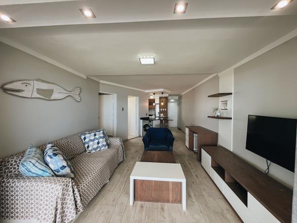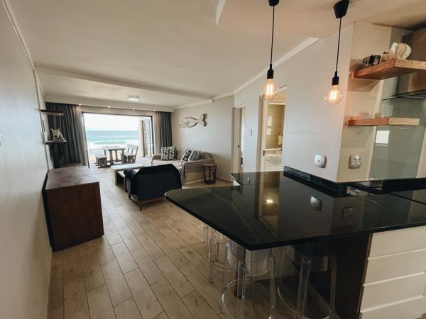 The apartment has a spacious balcony with a built-in braai and expansive sea views, a fully equipped kitchen, living dining area, TV, and with a main bedroom with a bathroom en-suite as well as a second bedroom and a family bathroom.