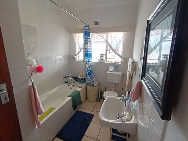 The kitchen provides ample cupboard space and room for a fridge, oven, and washing machine. The bathroom features a generous bath with an overhead shower. A secure, covered parking bay is located at the rear of the building.