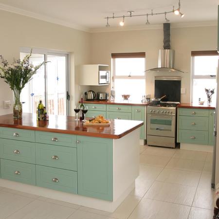 Modern Kitchen which is well equipped for cooking up Holiday feasts, a covered Terrace with Gas Braai (South African BBQ) andamp Ice Machine.