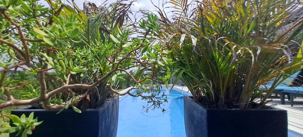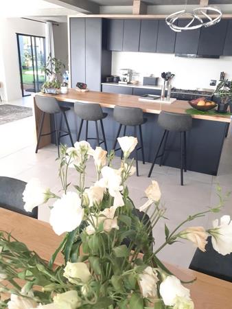 Zero compromise. Insane views of greenery. The space holds elements of composite oak, concrete and living greenery, all integrated into the Stormy palette. Suitable for Executive Families in and out of season. High ceiling living with huge glass doors flowing with a sparking pool, warm loungy deck. Longer stays on demand.