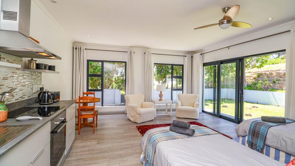 The perfect opportunity to experience a holiday in the beautiful environs of the safe, gated Brackenridge Estate, Plettenberg Bay. This modern studio, set at the front of the main house with its own private entrance, is ideal for a quiet escape.