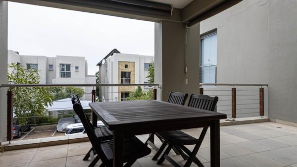 Large balcony with drop down blinds
