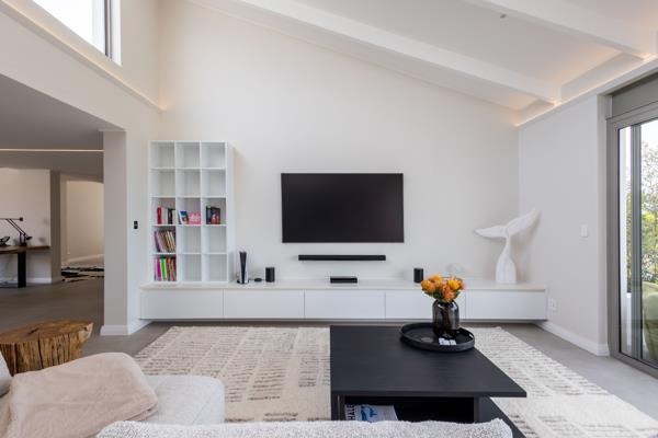 As you enter the home you are greeted with spectacular sea views, head down a few stairs into the large, luxury open living area.