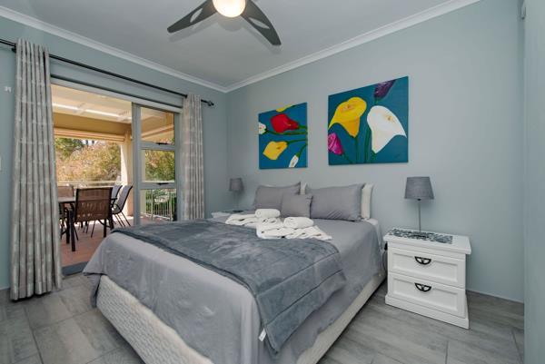 2 Bedrooms 2 bathroom North facing renovated apartment with 1 Queen & 2 Single beds on first level in block EE with views of the Gardens. Fibre. Louvre roof over patio with side drop blinds. Router to run Fibre during Loadshedding.