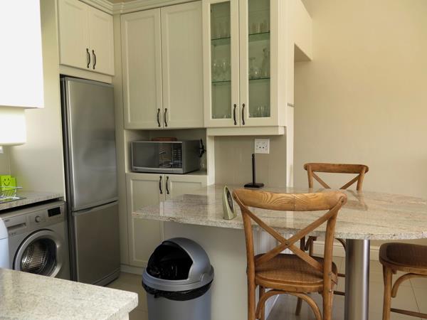 North facing, furnished and equipped, including all linen, washing machine, DSTV decoder activated, flat-screen TV and Weber grill. Bring own beach towels.