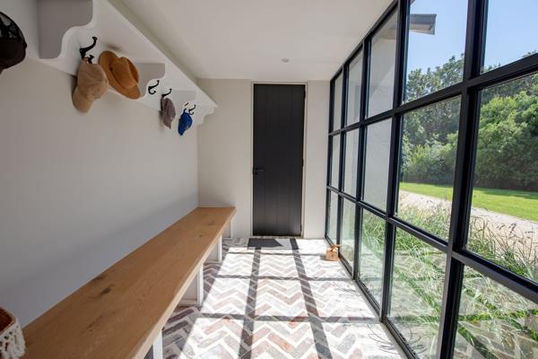 Large and light open-plan living area, with a TV lounge (with fire-place), well equipped kitchen and indoor dining area with fire-place and a table seating 8. All offering river views. There is a separate bar area to the left which leads out onto the covered outdoor dining and braai area. This also leads onto the large lawn area and decked swimming pool with pool loungers.