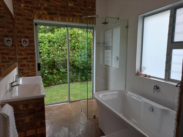 1 x Bedroom Spacious Bedroom with Queen size Bed, Doors open to Patio and Garden, en-suite Bathroom with Shower, Bath and Basin, private Toilet.