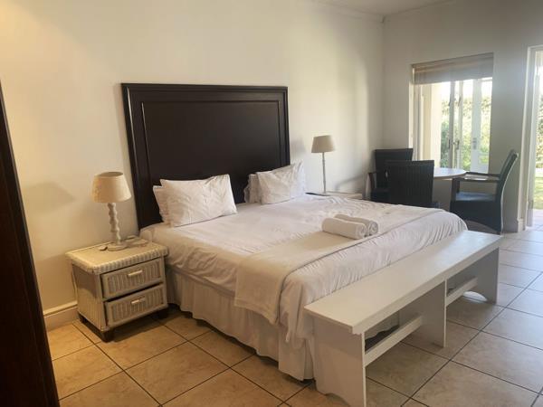 1 bedroom flatlet in secure estate. A ground floor open-plan living area. An equipped kitchen with bar fridge and microwave, bathroom with shower, toilet and basin.