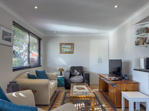 Open plan lounge with comfy sofa and armchairs, Smart TV with compact DSTV channel, guests can stream their own viewing channels.