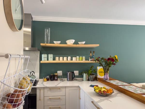 Lovely open plan spacious well-equipped kitchen with 4 plate gas hob, under counter electric oven, double sink, dishwasher, fridge/freezer.