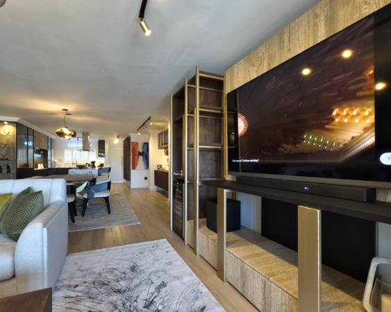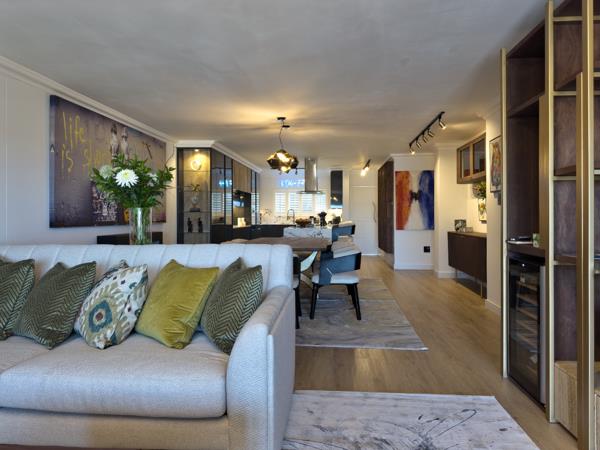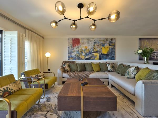 Large L shaped upmarket sofa, stunning views towards the ocean, doors open to the patio. 70-inch Smart TV with sound bar.