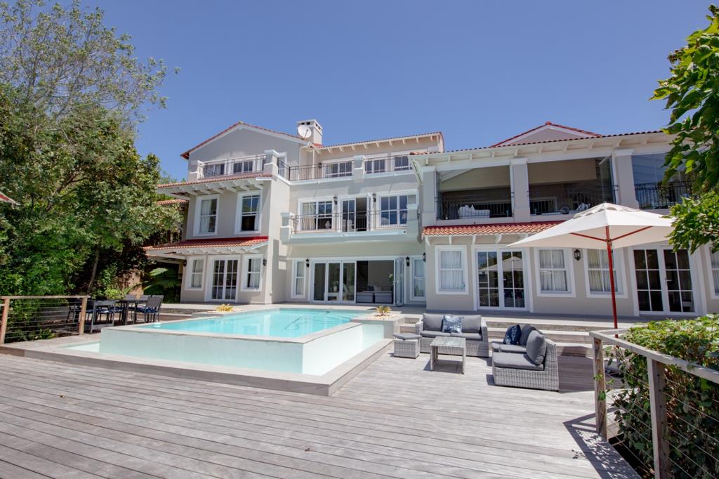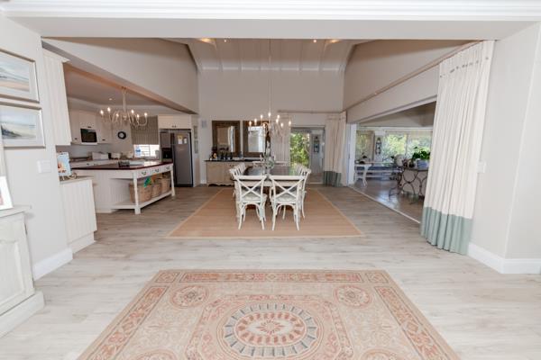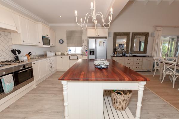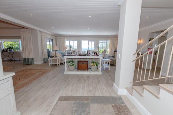 Nestled in the serene Schoongezicht private estate, the home exudes timeless sophistication and offers beautiful views of the sea, and valley.