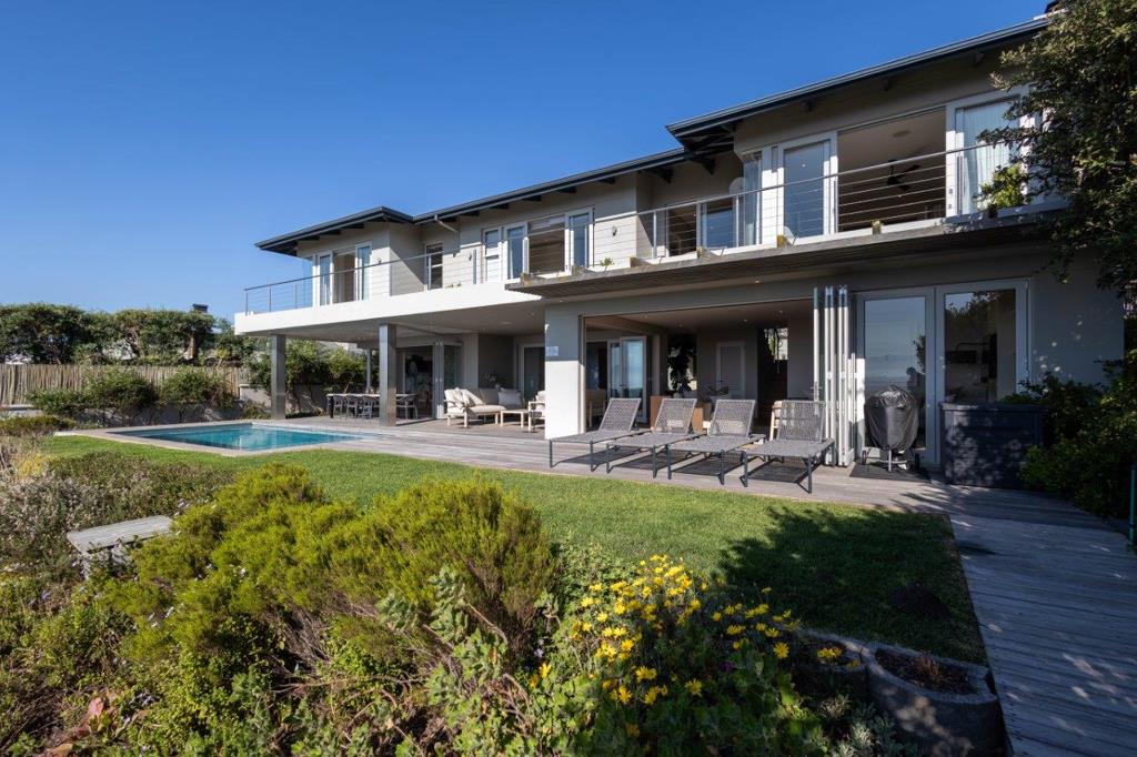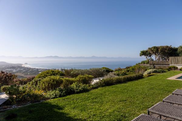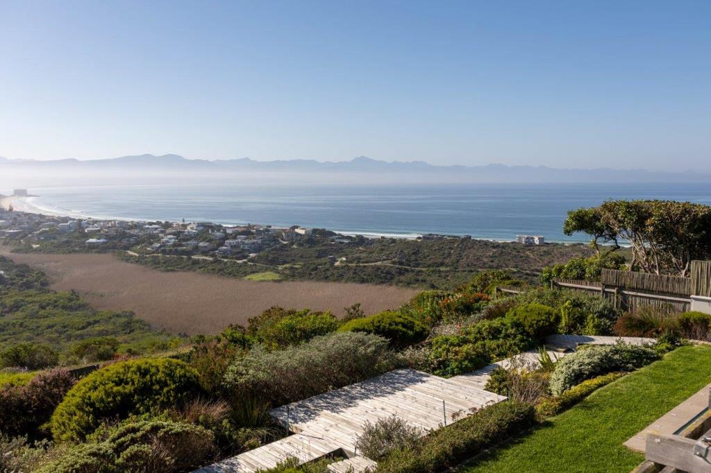 Doors opening onto the pool deck and entertainment area with outdoor dining table for 10, outdoor lounge area, a weber braai and sun loungers. This overlooks the indigenous landscaped garden with stunning views - across the estate, over the valley below, out the bay with an expanse of the ocean and the Tsitsikamma mountain range.